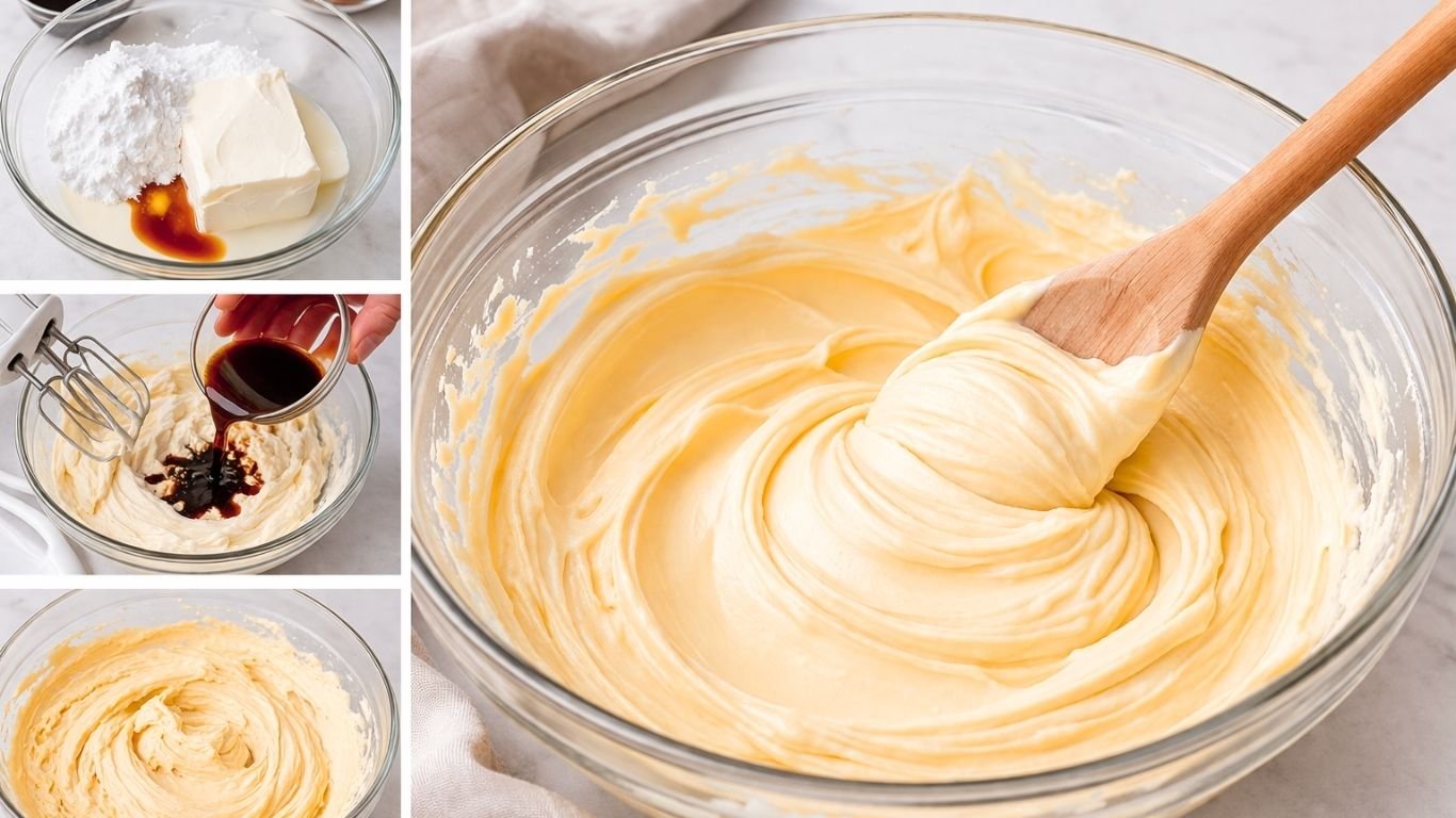 U zdjeli prvo izmiksaj krem sir dok ne postane potpuno gladak. Dodaj šećer u prahu i nastavi miksati dok ne dobiješ kremastu strukturu. U drugoj posudi umutite vrhnje za šlag zajedno s instant kafom i vanilijom. Kada dobiješ srednje čvrst šlag, dodaj ga u smjesu s krem sirom. Lagano izmiješaj dok ne dobiješ ujednačenu, bogatu kremu koja će savršeno držati slojeve kolača.
