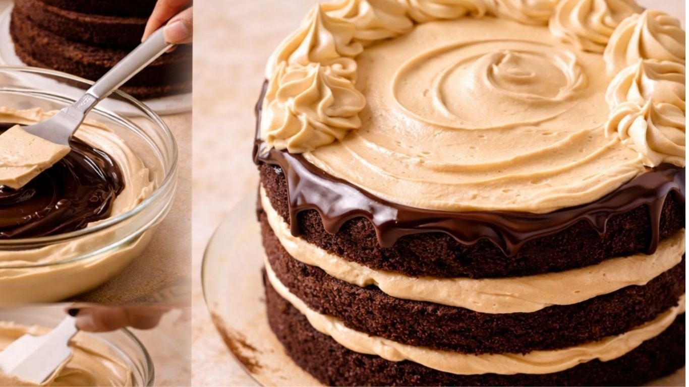 Na prvi sloj biskvita nanesi ravnomjeran sloj kreme. Zatim dodaj drugi biskvit i ponovi postupak. Kada složiš sve slojeve, premaži cijeli kolač tankim slojem kreme i ostavi ga u frižideru oko 30 minuta. Ovaj korak pomaže da se mrvice stabilizuju. Nakon toga nanesi završni sloj kreme i lagano prelij ganache preko vrha, puštajući da se slije niz ivice za atraktivan izgled.
